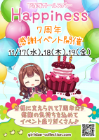 下赤塚 Girl's Bar Happinessです。おかげさまで、下赤塚ハピネスは、2014年11月19日にオープンしてから、7周年を迎えることができます。これまで、ご来店頂きました皆様の支えがあったからこそと、深く感謝して...