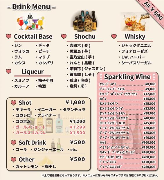 ショット各種 ¥1,200
